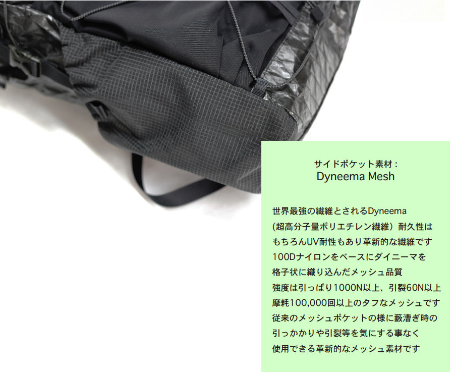 • サイドポケット素材 :Dyneema Mesh