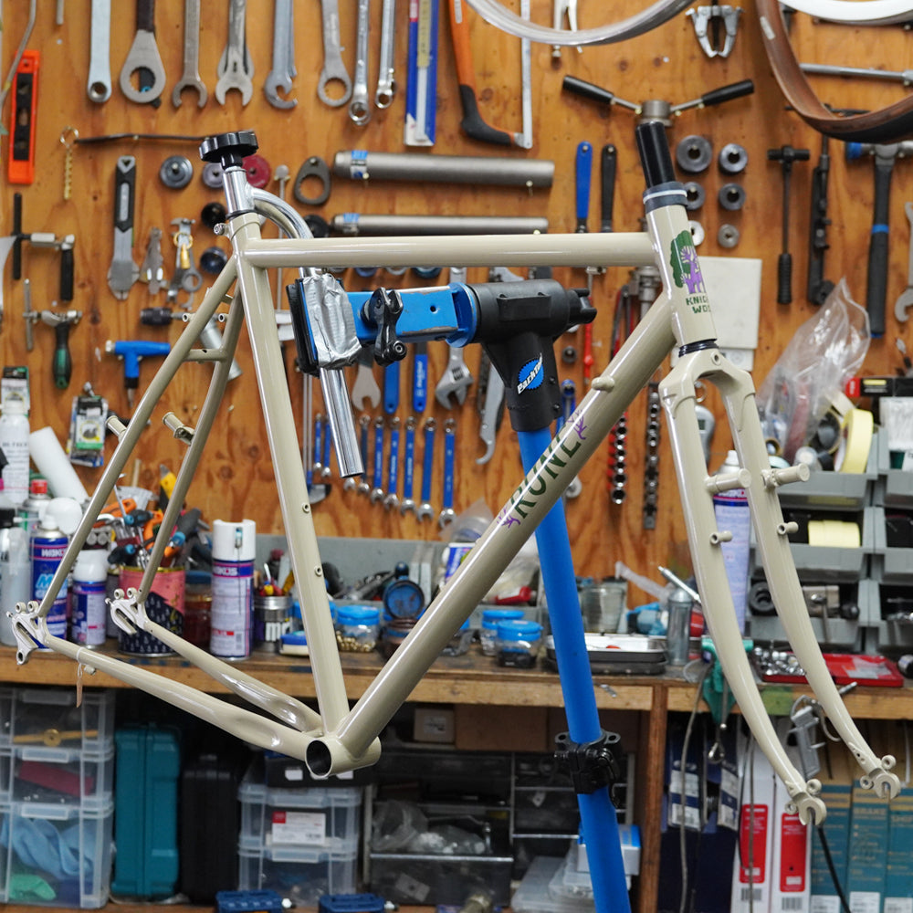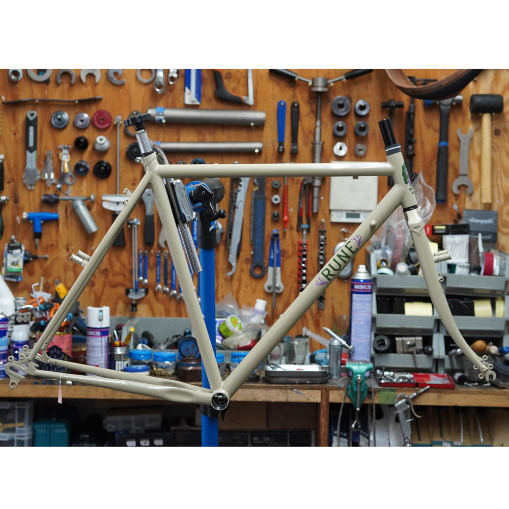 ドロップバーで組んでもよし、フラットバーで組んでもよし。しっかりめのグラベル、コミューターで組んでみる等々、それぞれの手持ちパーツや使い方から生まれてくるアイディアを存分に受け止めてくれるフレームではないでしょうか?