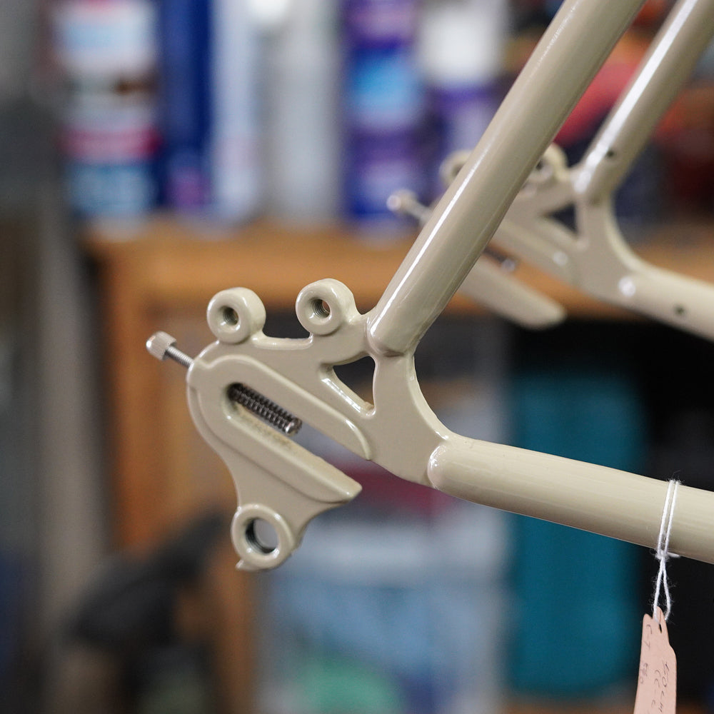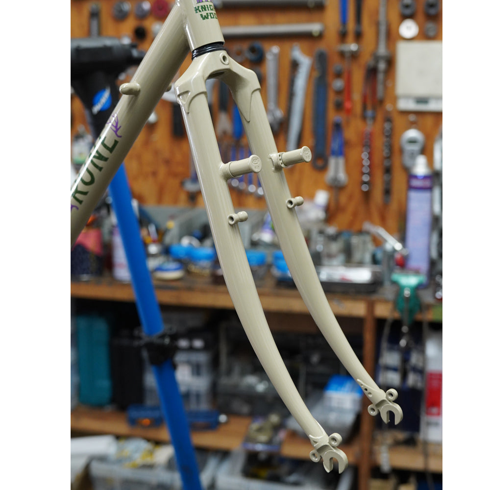 最大タイヤサイズ650Bx48mm、1インチスレッドのヘッドセット、Wレバー台座、スライドドロップアウト、フェンダー&ラックマウントと、オーナーの遊び方や環境の変化に合わせて組むことができる汎用性の高いバイクです。