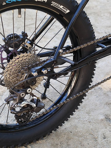 - 左右のチェーンステーを跨いで支える構造で高い安定性を実現
